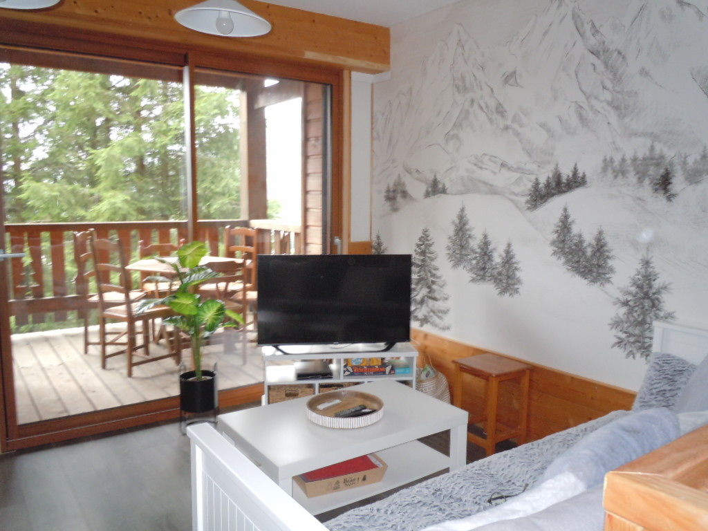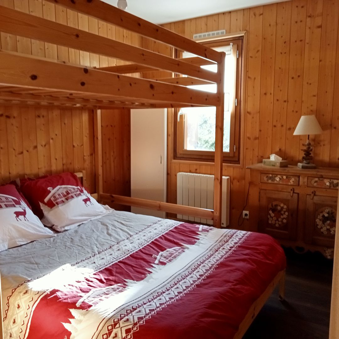 500 m from the heart of the resort, 41m2 apartment for 2 to 6 people in a quiet individual chalet with private parking, with superb mountain views, 200 m from the Rocher du Cerf slope.