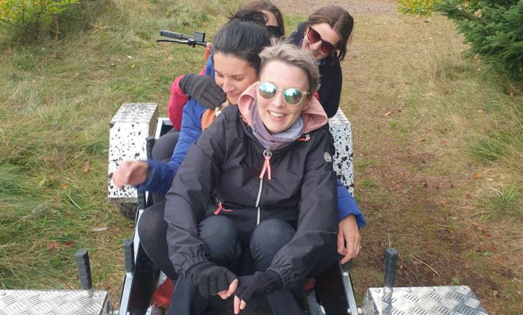 -Baptême assis dans un cani-kart : hors période hivernale ou quand la neige manque, nous vous proposons de découvrir les sports de traîneau à chiens en prenant place à bord d’un cani-kart. Attelage de 10 à 12 chiens.