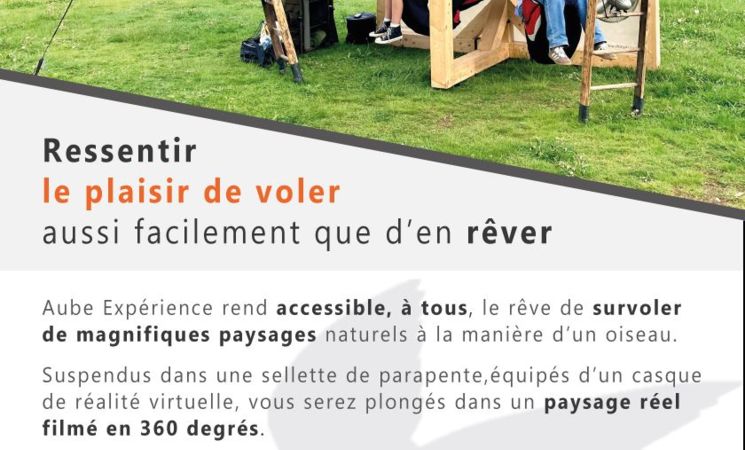 Prenez votre envol… sans quitter le sol ! Installez-vous dans une véritable sellette de parapente, enfilez votre casque de réalité virtuelle… et laissez-vous emporter pour un vol immersif à couper le souffle. Grâce à une vidéo à 360° filmée en conditions réelles, vivez les sensations du parapente comme si vous y étiez : liberté, hauteur … tout y est ! Une expérience originale, confortable et accessible à tous, idéale pour découvrir les joies du vol en toute sérénité. Au programme : 4 vols au-dessus du Massif Cantalien