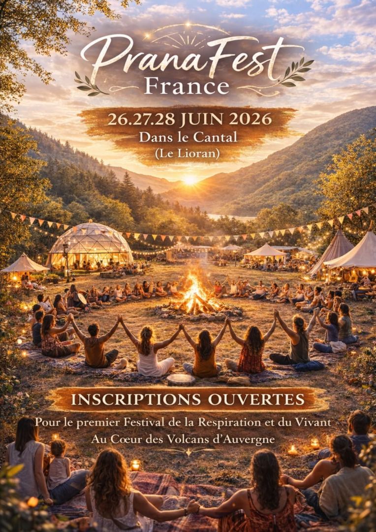 >>Nous sommes deux entreprises leader en France dans le domaine de la respiration et organisons des stages et formations dans le monde entier (Europe, Inde-Nepal, etc..). >>La respiration est au centre de la santé, du bien-être et de la vitalité. Nous voulons rassembler, dans un cadre naturel exceptionnel, plusieurs centaines de participants (France, Suisse, Belgique, Italie) autour de conférences, d’ateliers pratiques et d’expériences immersives autour de la respiration: dont le nom Prana qui en sanskrit signifie énergie et souffle. >>Le Lioran est l’endroit idéal : une montagne vivante, un air pur parmi les meilleurs de France, et la puissance des volcans du Cantal comme symbole. Ateliers et conférences animés par des intervenants spécialisés (respiration, santé, bien-être, mouvement, nature). >Expériences en plein air (respiration dans les prairies, marches conscientes, montée au Plomb du Cantal en téléphérique pour respirer avec la vue). >Une ambiance consciente et festive, avec des boissons saines (jus, tisanes)… Exposants autour du bien-être et de la respiration…Organisé par Inspire Potential.